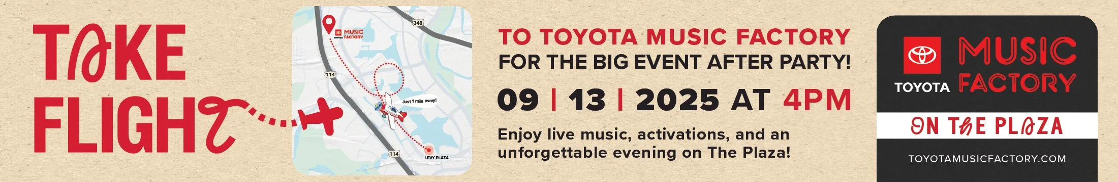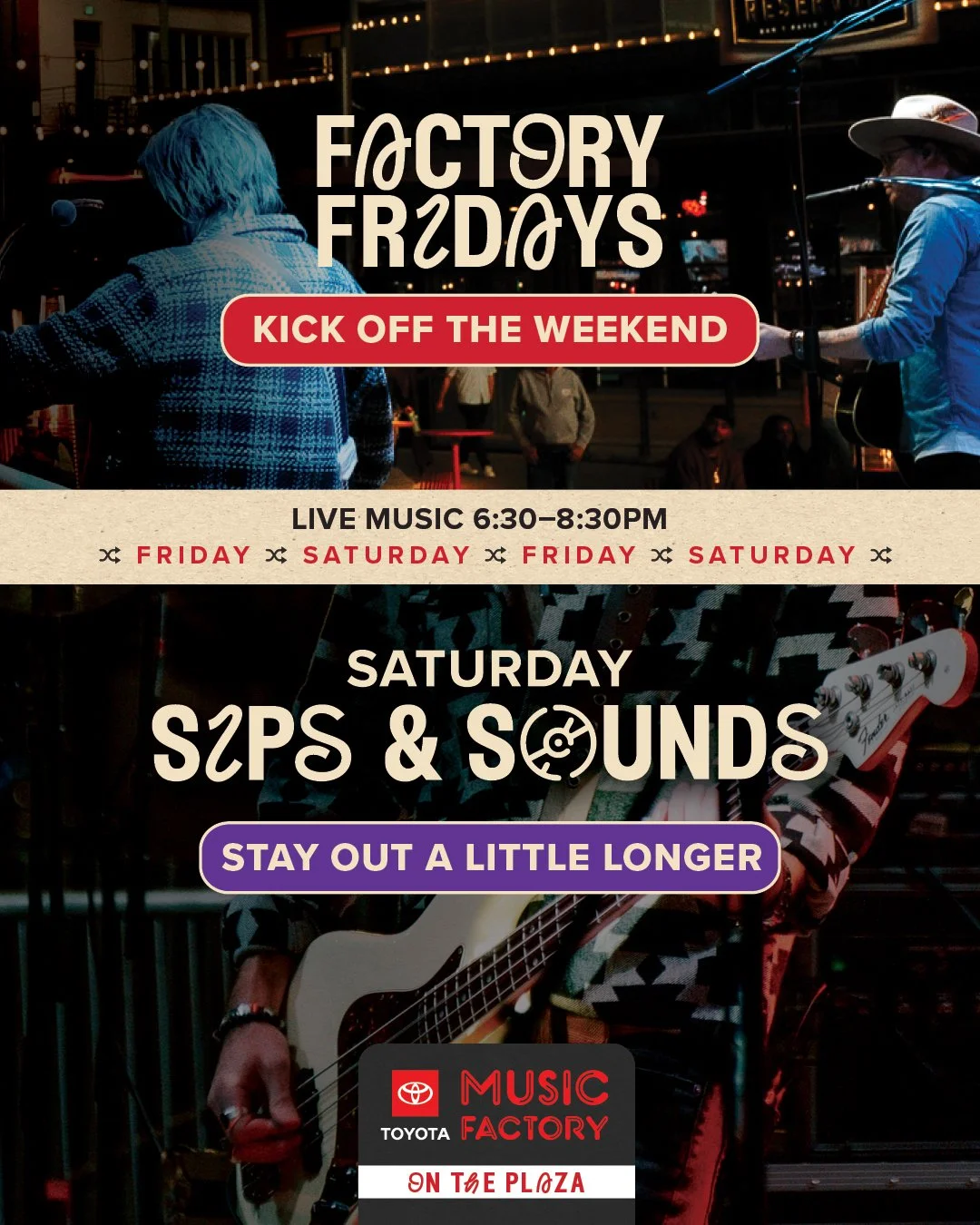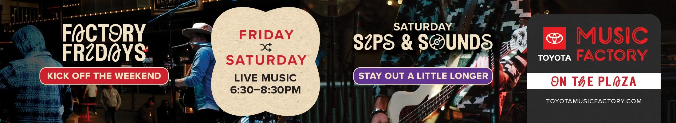 Situated in the heart of Toyota Music Factory in Irving, TX, and surrounded by restaurants and bars to suit every taste, The Plaza is an open-air plaza equipped with a stage. A hub for non-stop entertainment, you’ll regularly find incredible local, regional, and national talent filling the air with a variety of music!